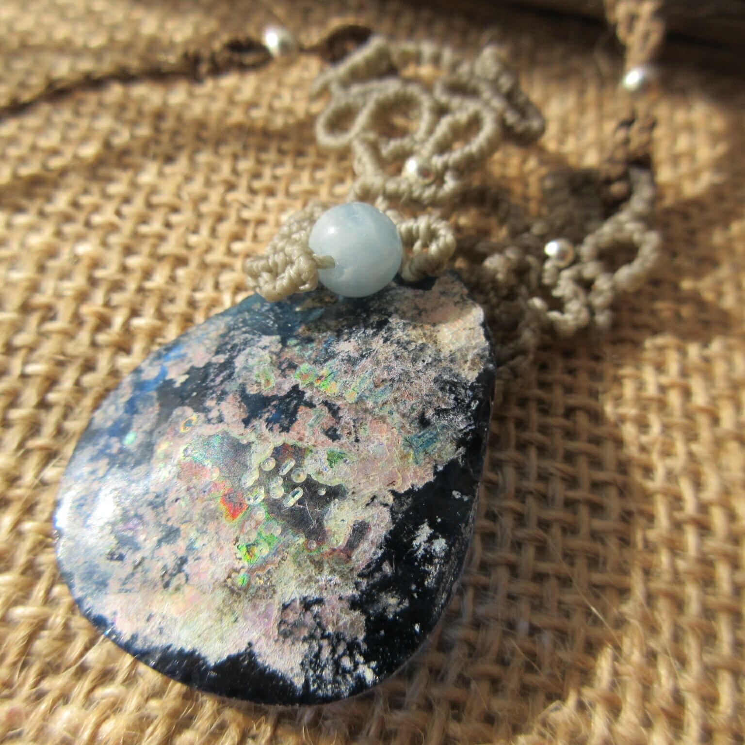 【2wayリバーシブル】ローマングラスマクラメ編みペンダント