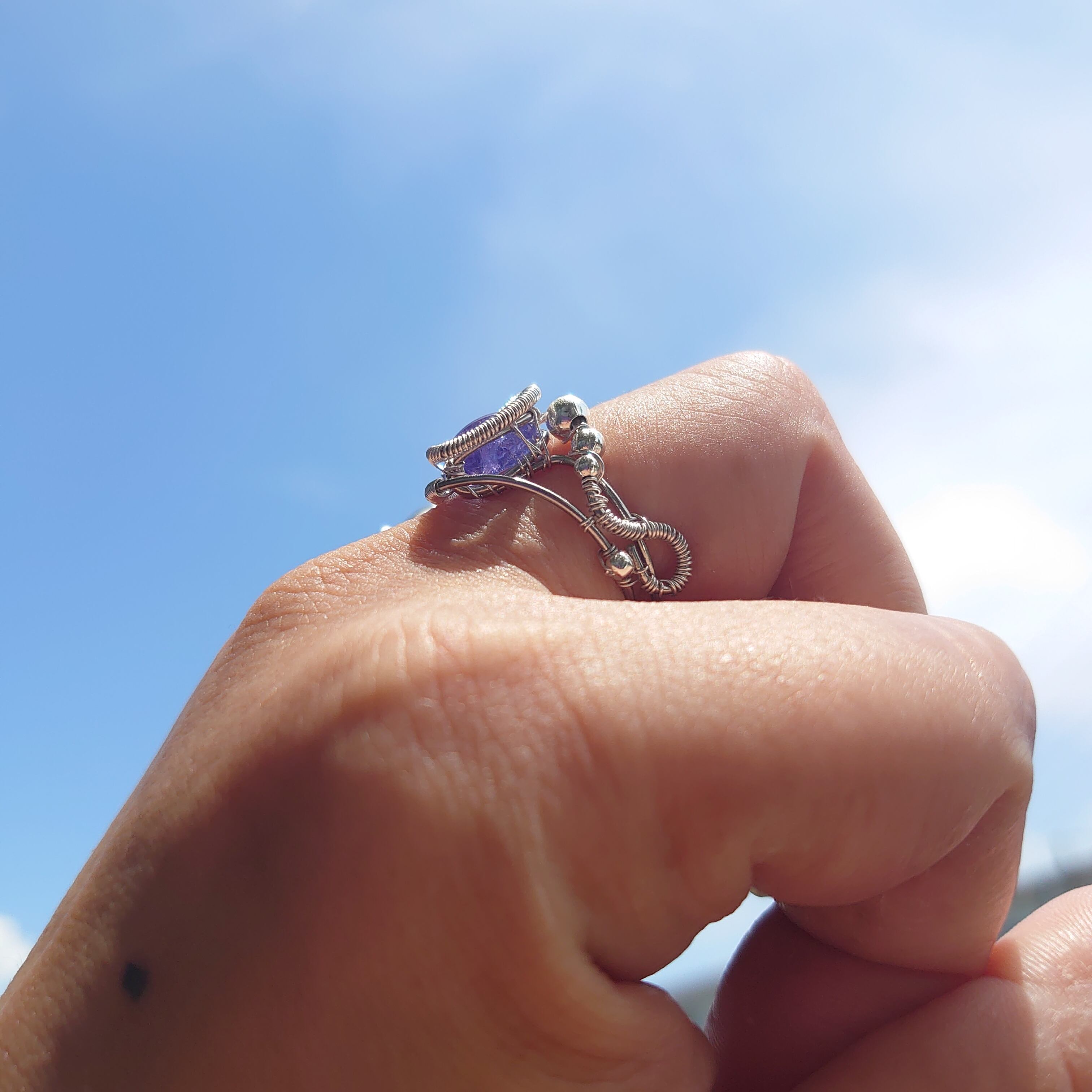 魅了されるなんとも言えないブルーの「タンザナイト」のワイヤーリングです。