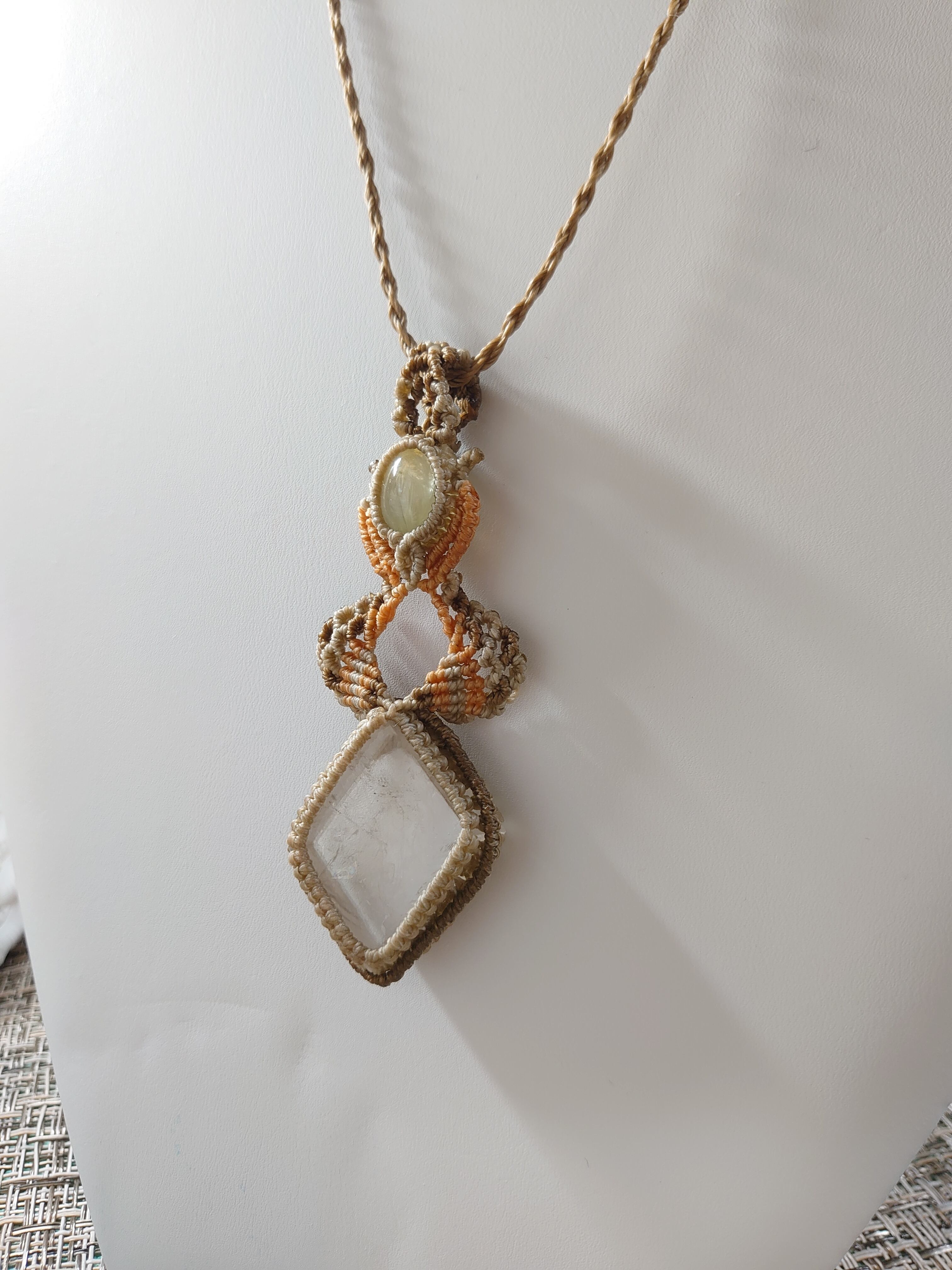 透明度が素晴らしいオプティカルカルサイトのマクラメ編みネックレスです。