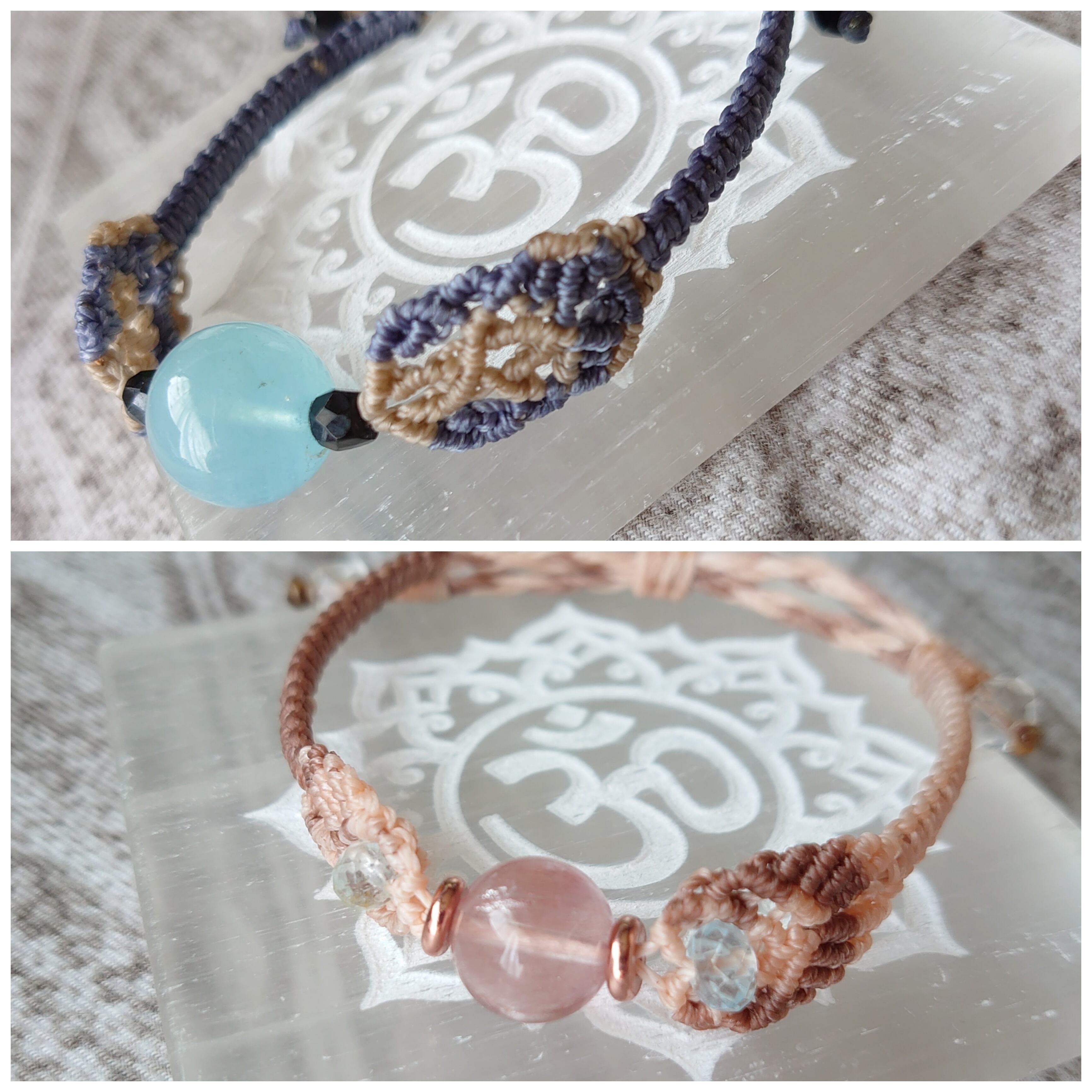天然石のひと粒をマクラメ編みしたブレスレットです。