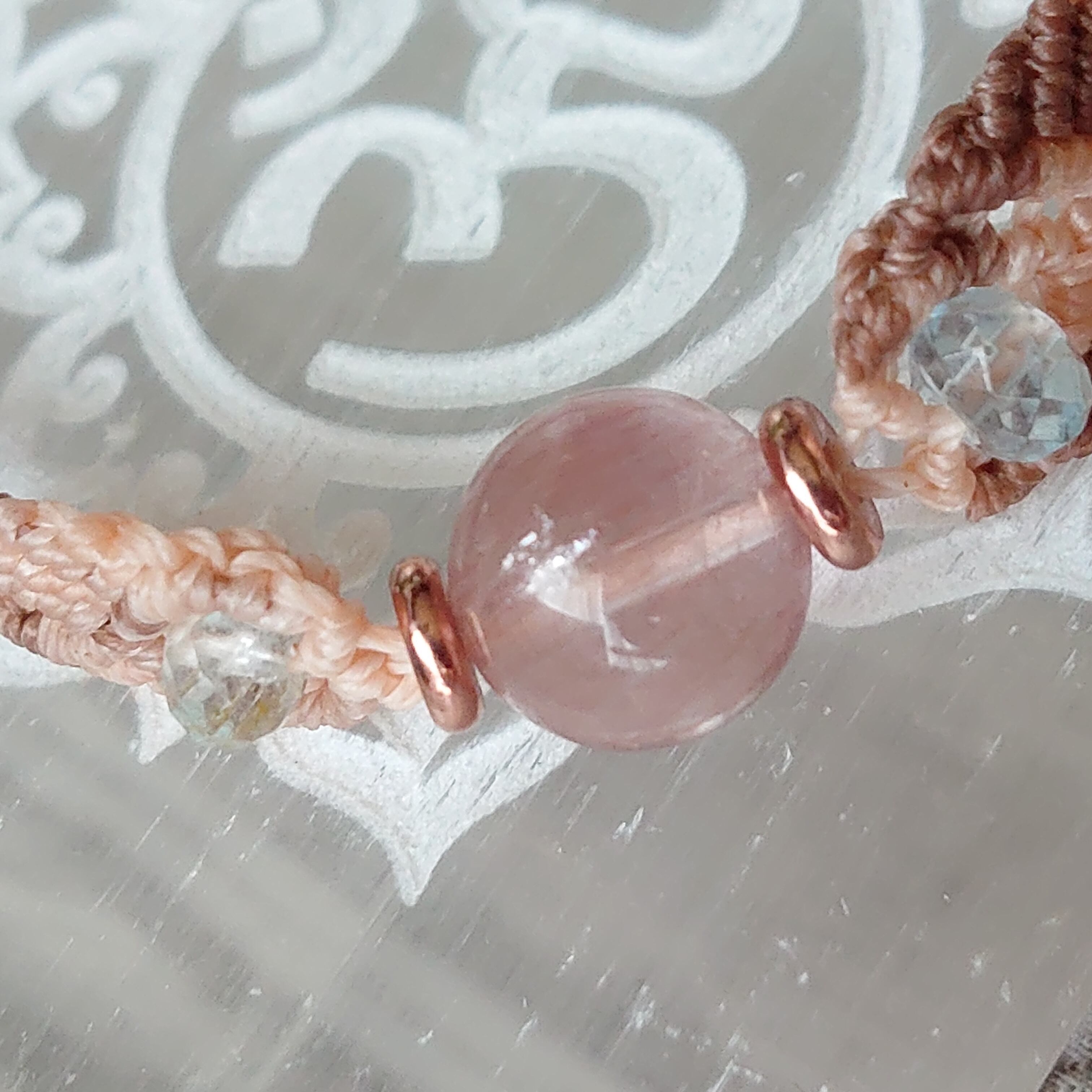【ひと粒ブレスレット】ピンクラビットヘアクォーツ・アクアマリン