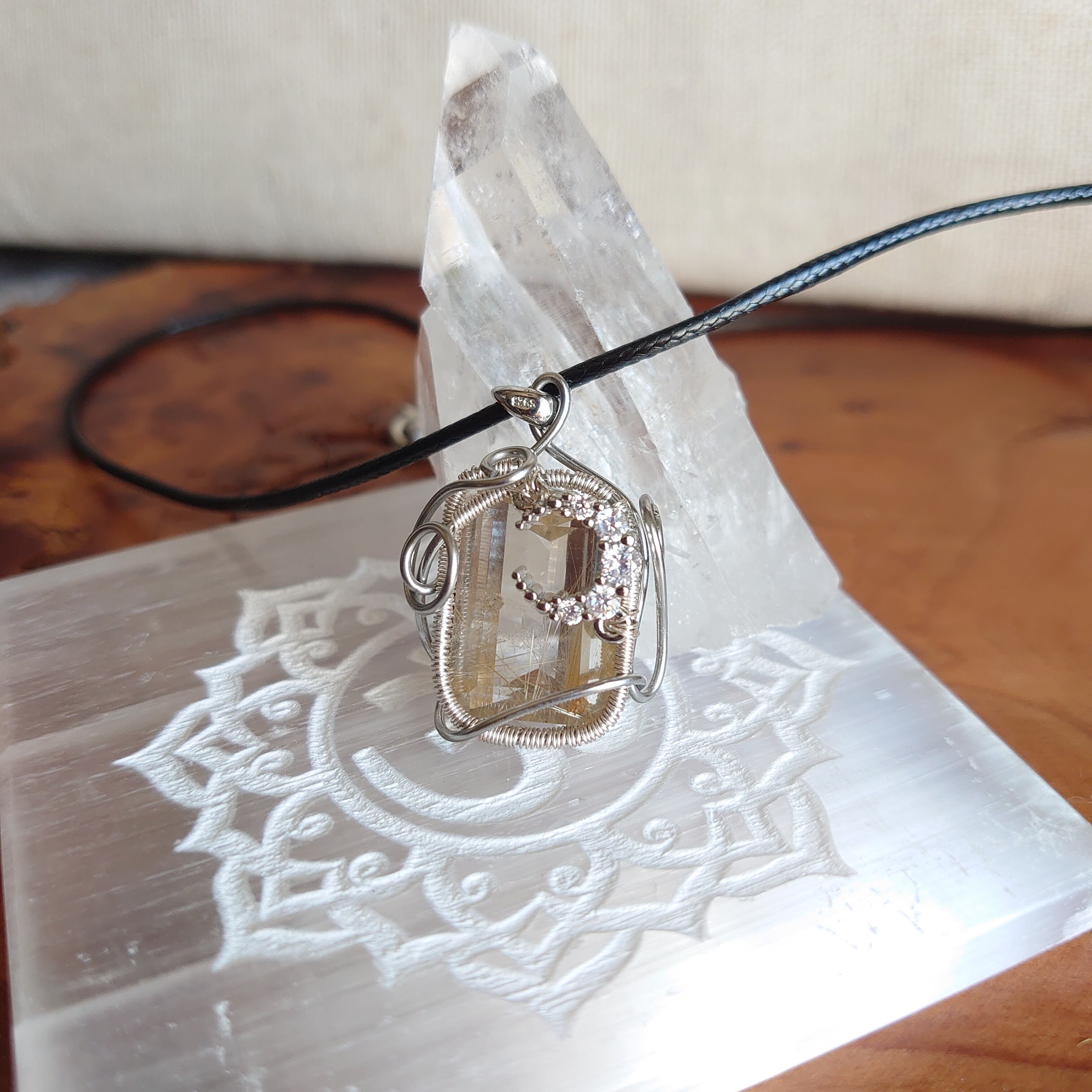 透明度抜群のルチルクォーツのワイヤーペンダントトップです。