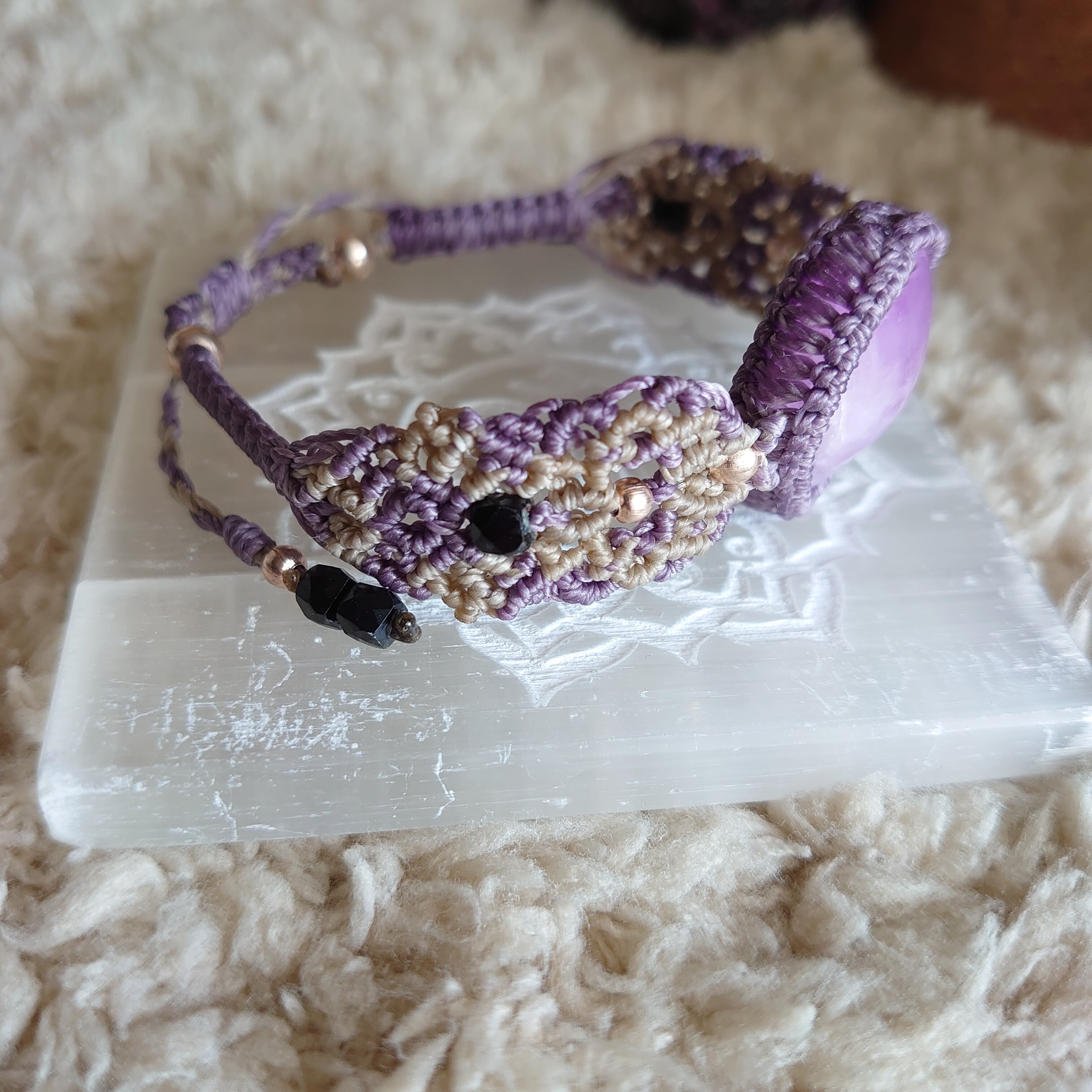 【ピンクパープル】クンツァイトハート型マクラメ編みブレスレット