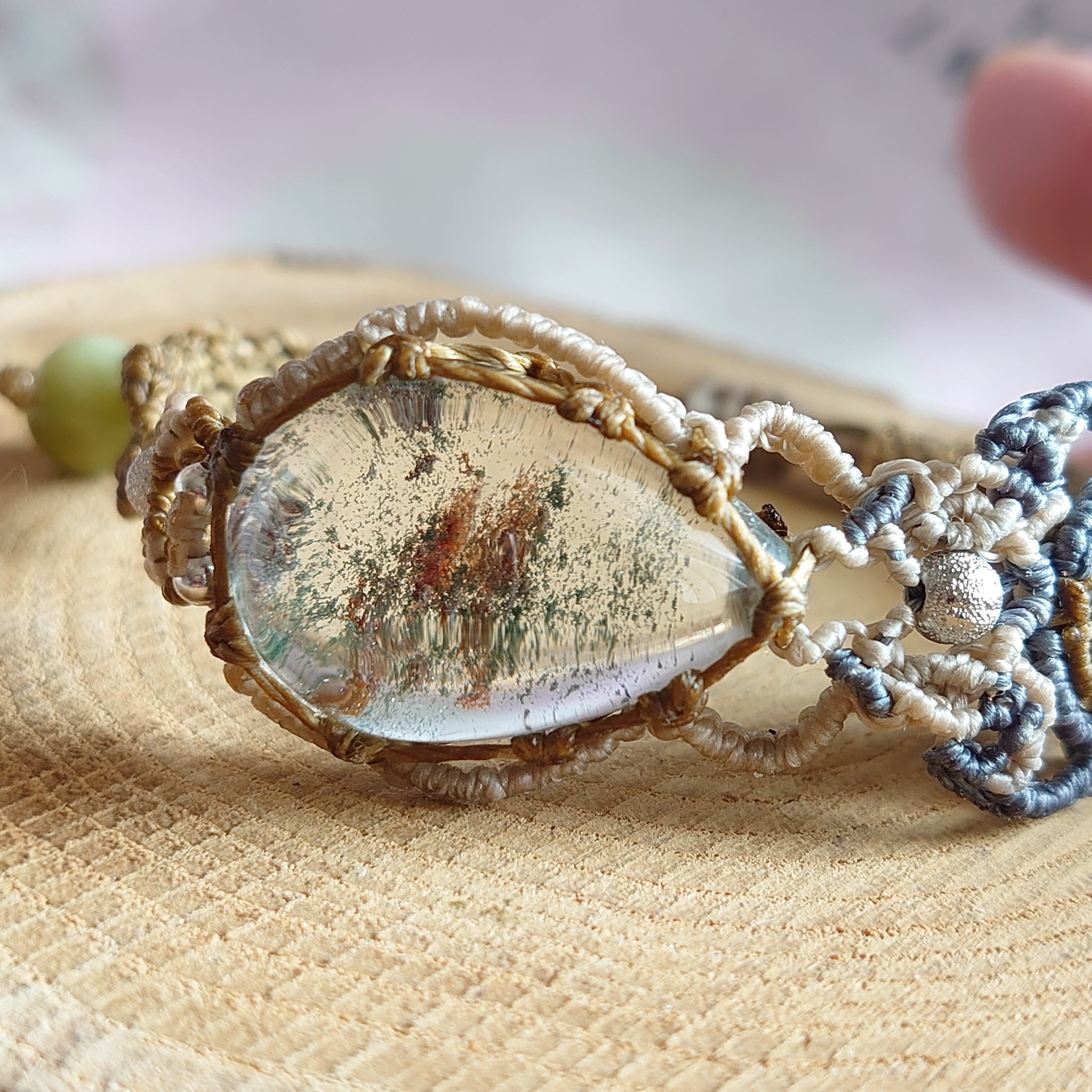 【透明度抜群】ガーデンクォーツとブラックスターサファイアのマクラメブレスレット