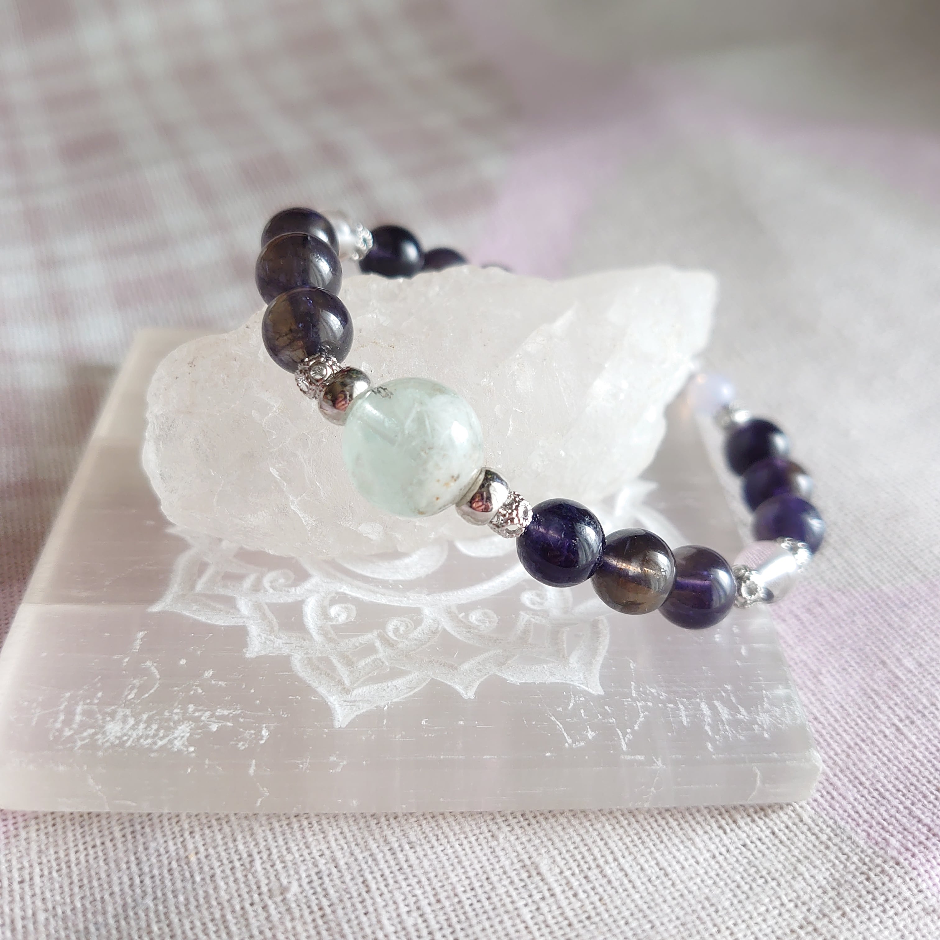 カラーチェンジのアイオライトデザインブレスレットです。