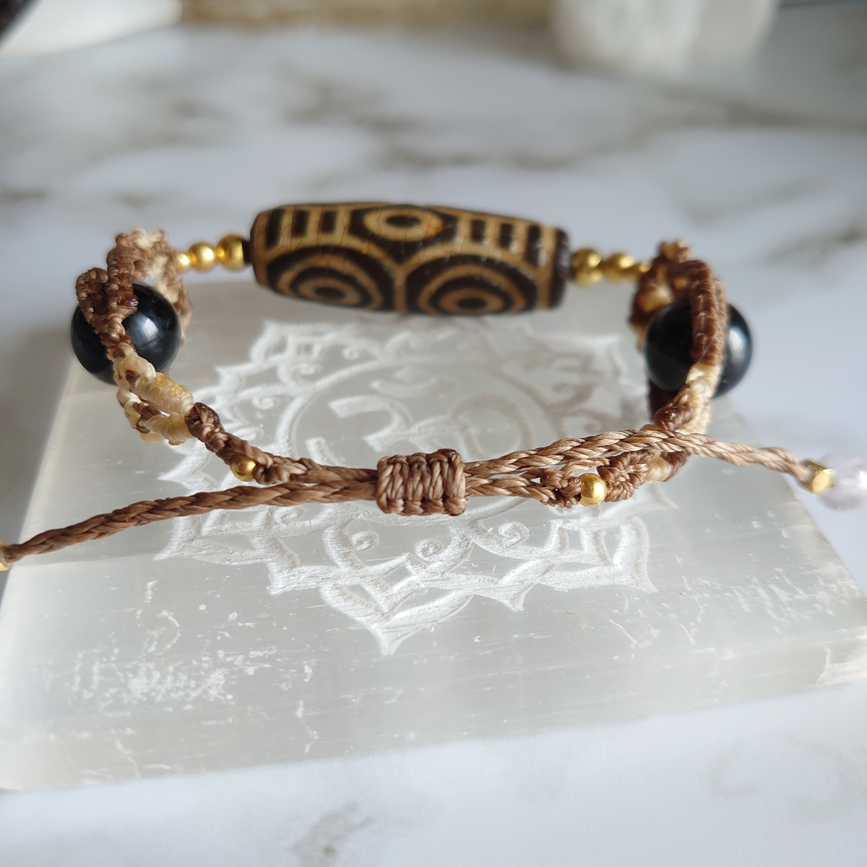 天珠の中で最強と言われる龍眼天珠のマクラメ編みブレスレットです。