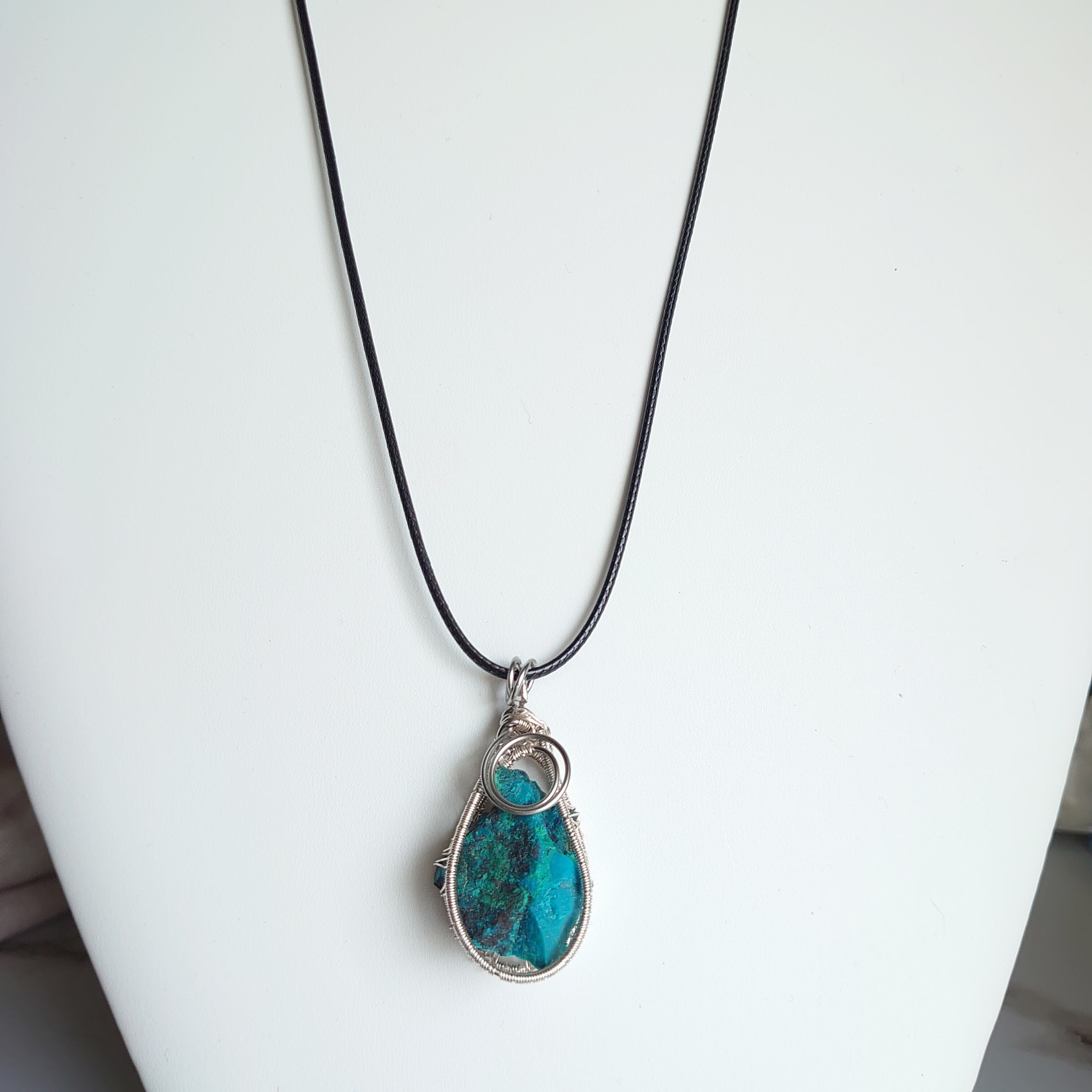 【幸運と繁栄】クリソコラ原石ワイヤーペンダント