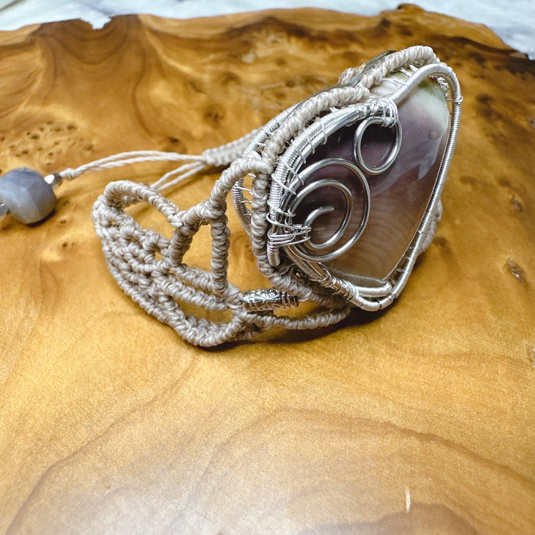 個性的な色や模様が素敵なオーシャンジャスパーのマクラメブレスレットです。