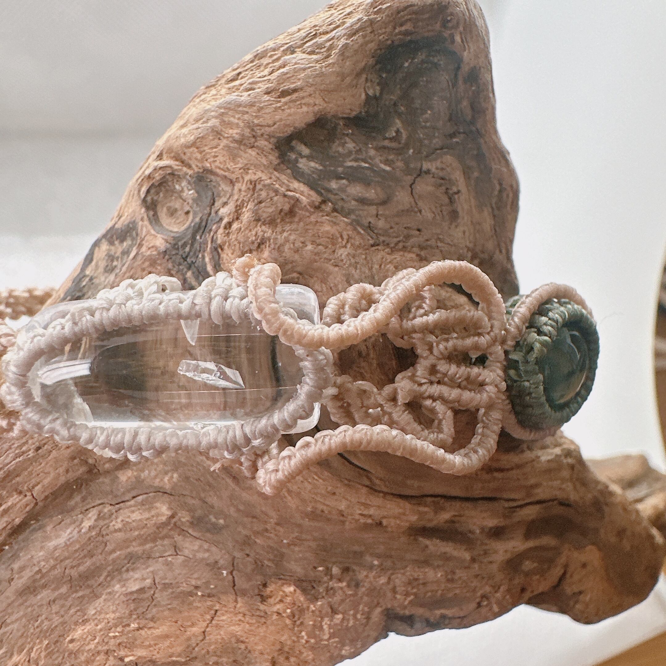 神秘【限定一点クォーツインクォーツ&モスアゲート】マクラメブレスレット